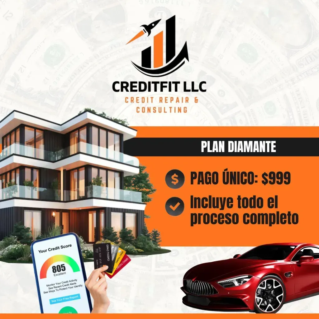 El Plan Diamante ofrece nuestro servicio de reparación de crédito más completo de principio a fin. Este plan incluye todo el proceso de reparación de crédito, abarcando todas las cuentas negativas, casos complejos y estrategias detalladas de disputa. Los clientes reciben atención prioritaria, monitoreo continuo y soporte personalizado durante todo el proceso. El Plan Diamante es ideal para quienes desean una solución integral para restaurar y fortalecer completamente su crédito.